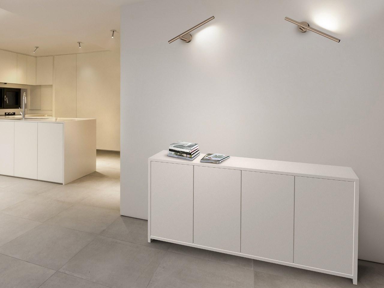 PALITO WALL, the exquisite wall luminaire from the PALITO series, dazzles with its adaptable flexibility, 330° tiltable and also rotatable against the wall, making a wide assortment of lighting effects. For a uniform plan, the wall luminaire can be superbly joined with other luminaires from the PALITO series. Lamping: LED (SELV), CRI > 90, warm white 3000 K (discretionary: 2700 K, 4000 K), direct light yield, 6,5 Watt, 650 Lumen | TRIAC dimmer Color: bronze (discretionary: champagne gold, dark, silver) anodised, brushed