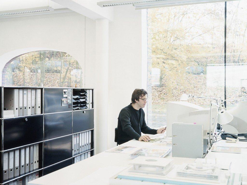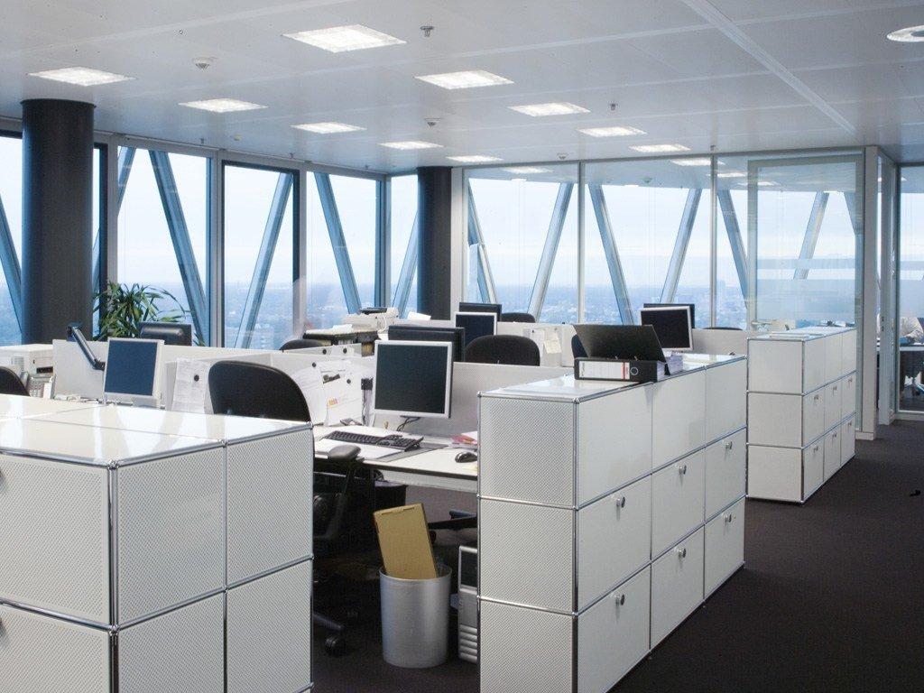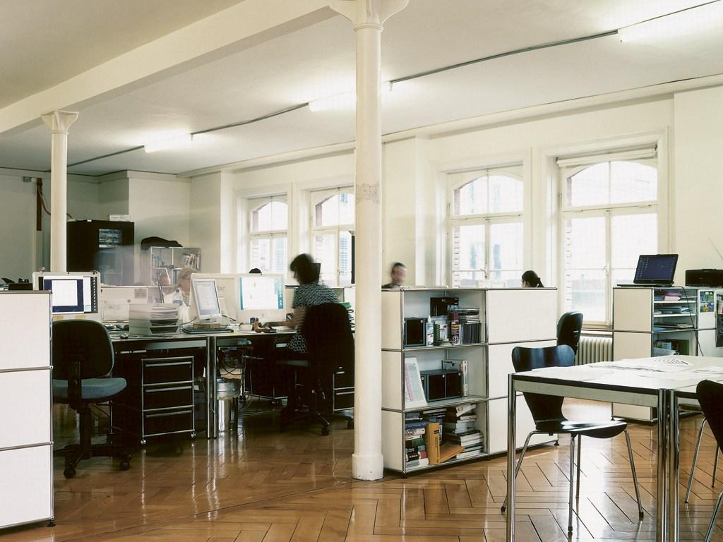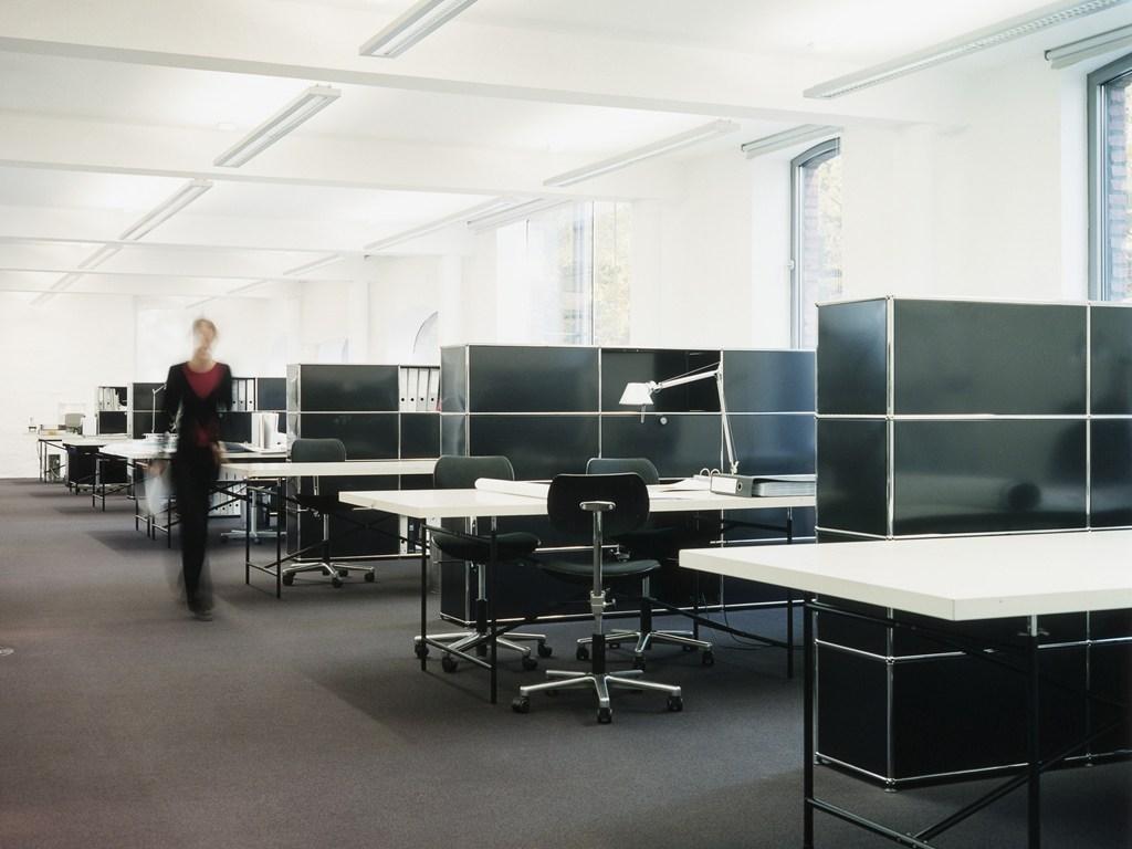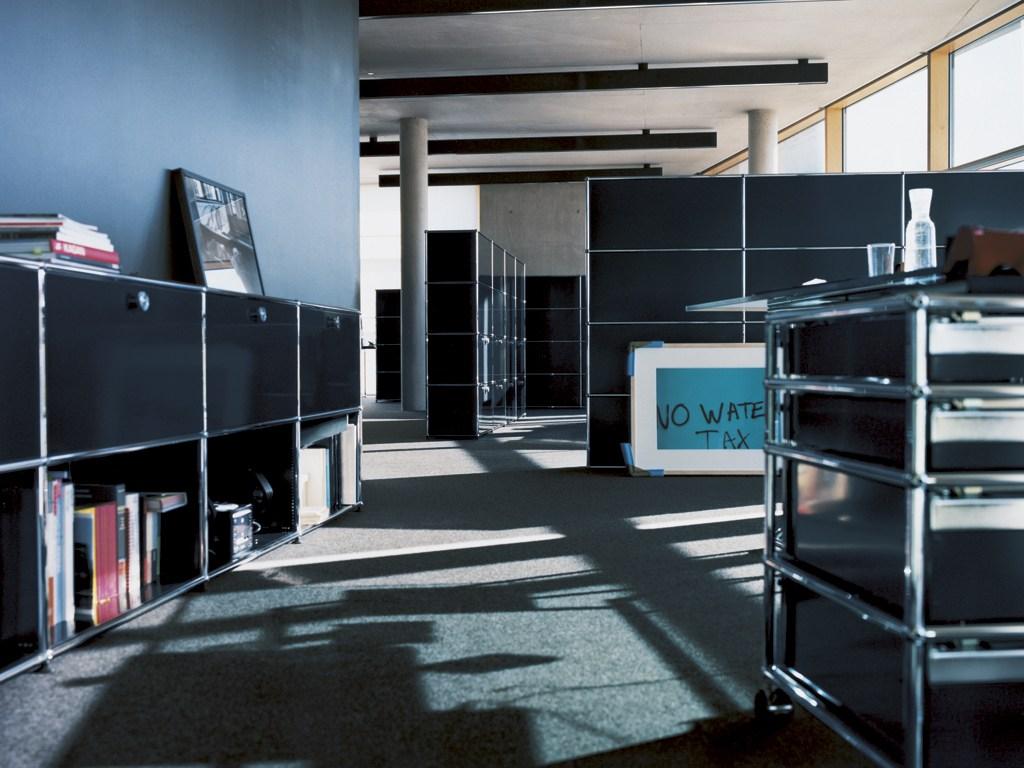 USM Haller modern storage solutions in shared office environments create efficiency and privacy while providing access to nearby colleagues.