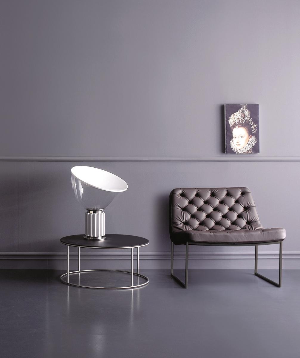 Sella - Small armchair with wide and comfortable seat, its look is made light through the frame in matt lacquered metal frame available in several colours. Available normal, quilted or with the elegant capitonné finish.