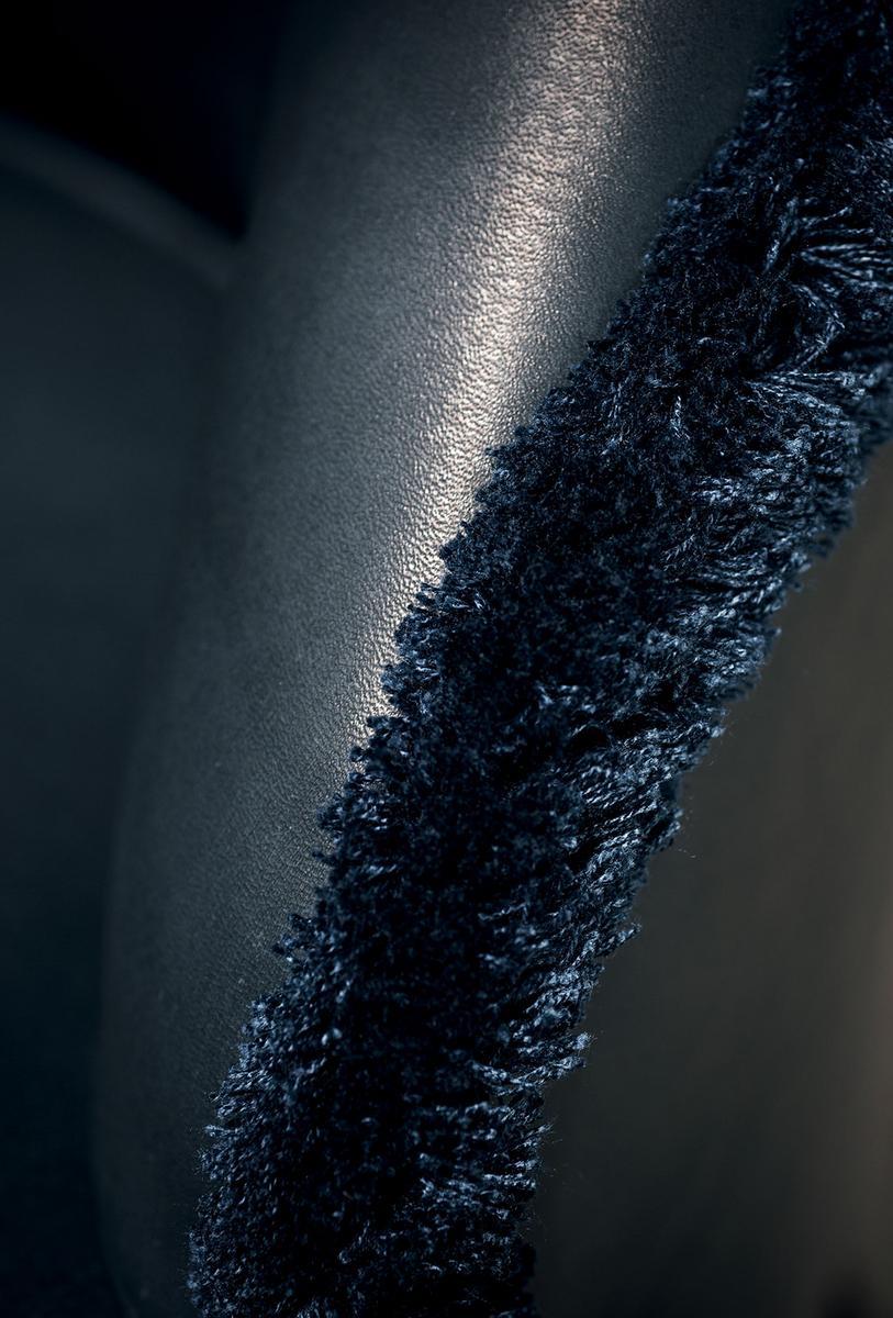 SELLERINA is a leather armchair designed by Paola Navone. Frame in fir and poplar. Feet in wengé-stained beech. Filling in hand processed vegetable horsehair and padding. Seat springing with hand-tied steel springs on jute straps. Seat cushion in hand processed vegetable horsehair and polyurethane foam filling. Back with loinsrest in rigid polyurethane with vegetable horsehair and padding support. Piping with decorative blue braid.