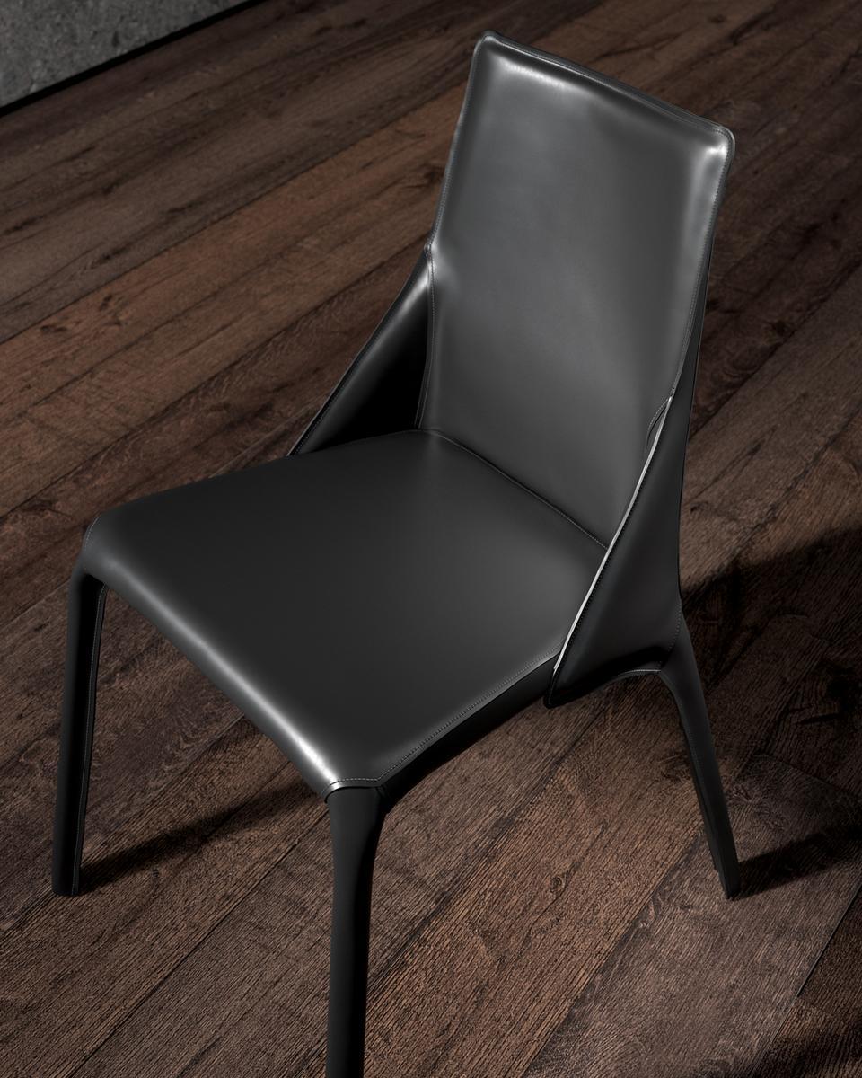 Kite is a leather covered metal chair. The new Kite chair crookedly floats in your home. The articulated calculations of the leather give it a state of wings to shape the plan of a kite.